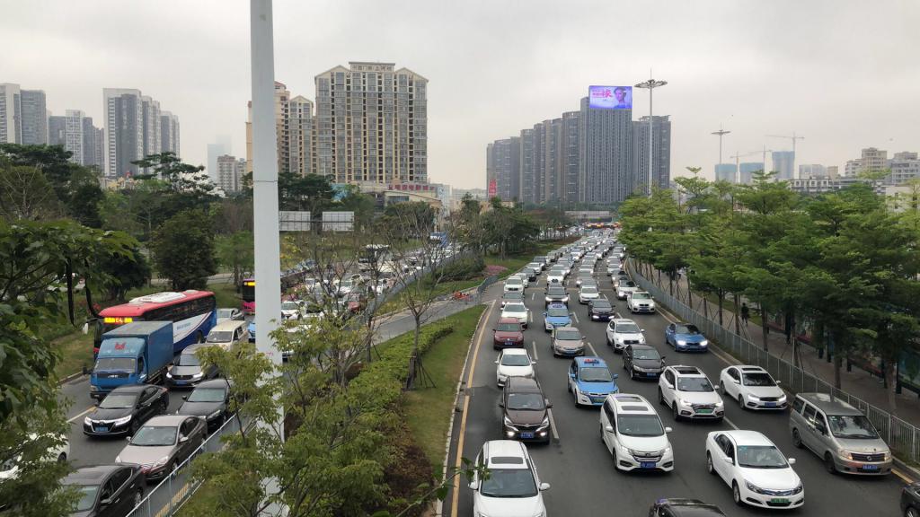8時(shí)18分,深晚記者在民樂地鐵站附近的人行天橋上看到,此時(shí)梅林關(guān)雙方向車流量非常大,車輛一直處于走走停停的狀態(tài)。