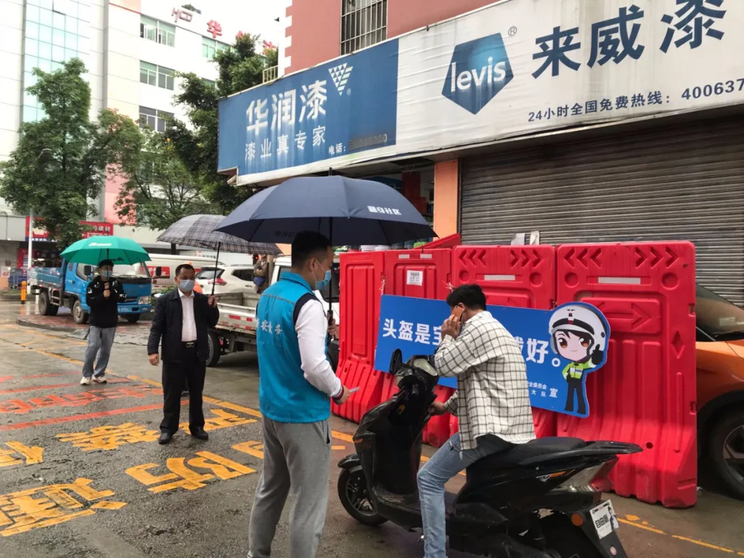 嚴(yán)查不戴頭盔違法,曝光所在社區(qū)。深圳交警聯(lián)合各轄區(qū)街道交安辦在社區(qū)內(nèi)開展頭盔佩戴抽查整治行動,提高電動自行車駕乘人員的交通安全意識。對頭盔佩戴率較低的社區(qū),進行通報曝光。