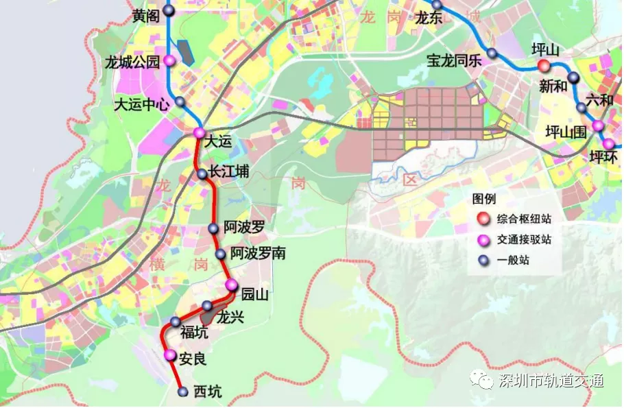 16號(hào)線二期工程自大運(yùn)站至西坑站,線路長(zhǎng)度9.53公里,為地下線,采用A型車6輛編組;建設(shè)工期5年。