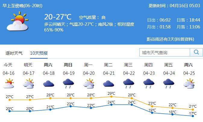 見圳客戶端·深圳新聞網(wǎng)2020年4月16日訊 我市今天到明天多云間晴天,16日早晚有輕霧,氣溫20-27℃;南風(fēng)2級;相對濕度65%-90%。早晚稍涼,午間體感較熱,注意及時增減衣物;出門要注意防曬,戶外活動需注意及時補充水分。