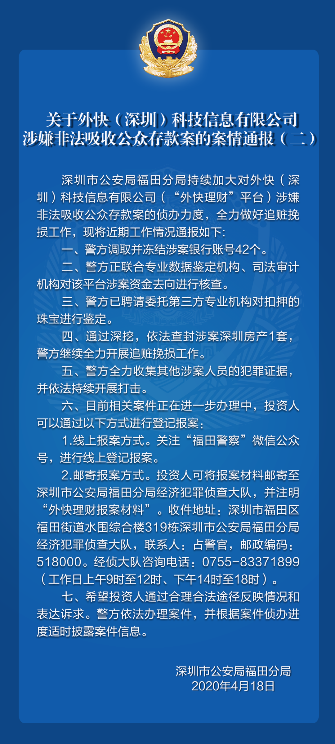 關(guān)于外快(深圳)科技信息有限公司涉嫌非法吸收公眾存款案的案情通報(二)