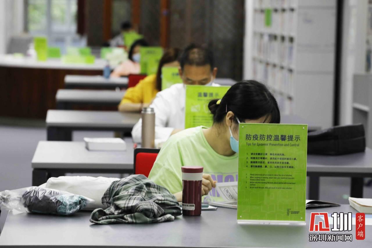 現(xiàn)在正處疫情期間,福田區(qū)圖書館也調(diào)整了開放時間,從原來的朝九晚九,改為朝九晚五。在座位安排方面,記者在現(xiàn)場看到,自習的市民基本上都是單人單桌,保持安全距離。