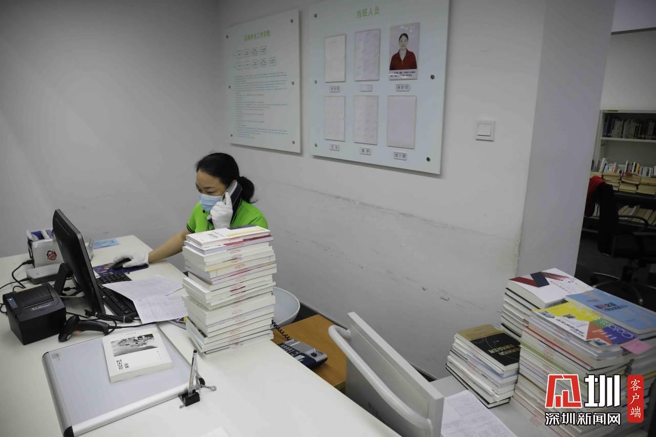 工作人員正在整理外館的書籍,每周外館的書籍會到福田圖書館交流一次。