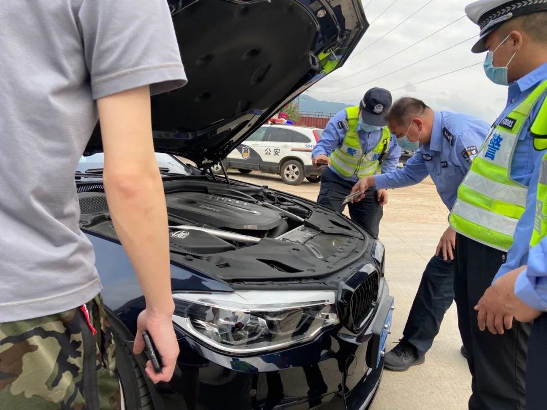 4月21日15時,深圳交警接到大數(shù)據(jù)平臺預(yù)警,發(fā)現(xiàn)一輛粵B號牌寶馬車涉嫌改裝后上路行駛。深圳交警鐵騎立即按照相關(guān)信息進(jìn)行排查,最終在某小區(qū)內(nèi)負(fù)二樓停車場找到該違法改裝車輛。