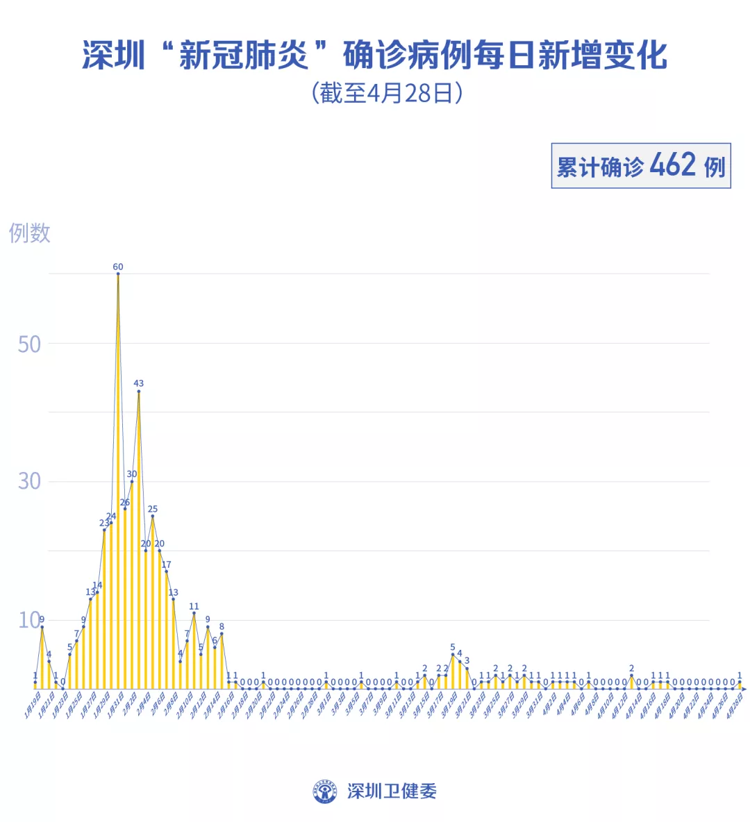 截至4月28日24時,深圳累計報告新冠肺炎病例462例。4月28日當(dāng)天新增境內(nèi)病例1例,出院4例。