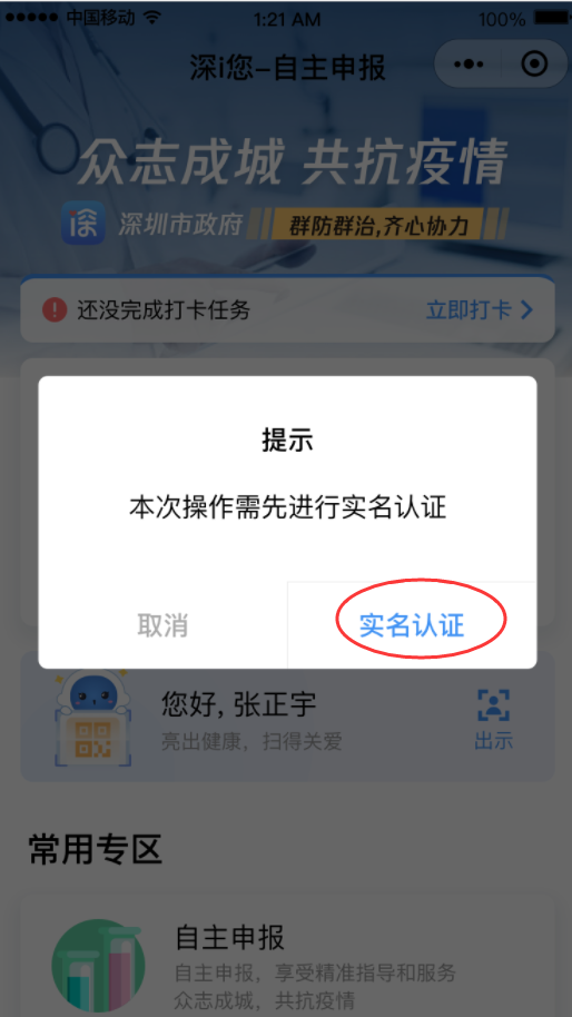 第二步:點擊底部菜單欄“健康申報”-“深i您”進入申報系統(tǒng)。