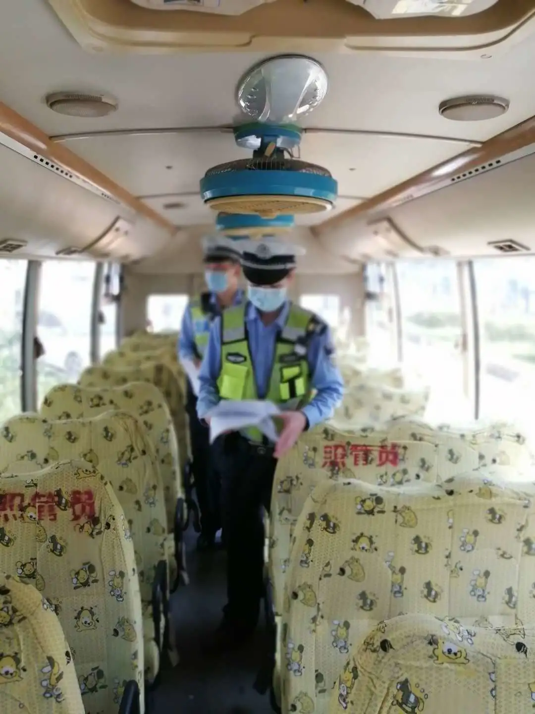檢查校車車況及安全裝置,是否落實“每個座位一條安全帶”、配備行駛記錄功能的衛(wèi)星定位裝置、干粉滅火器、急救箱和照管人員座椅(位)、應急出口和應急錘(逃生錘)等安全設備、噴涂放大牌號和統(tǒng)一顏色、粘貼標識等。