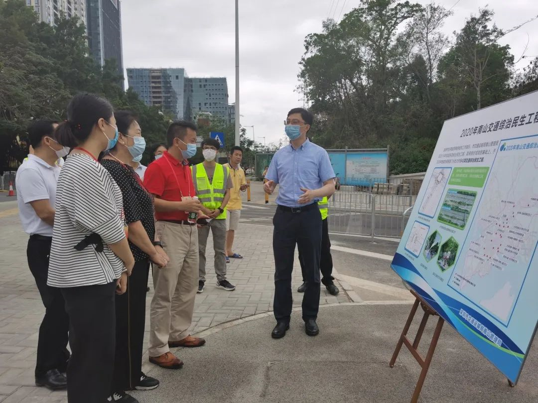 ▲體驗結束后,在調研現(xiàn)場,深圳市交通運輸局南山管理局相關負責人向區(qū)人大代表們講解今年南山交通綜治民生工程。消息報記者肖佩攝