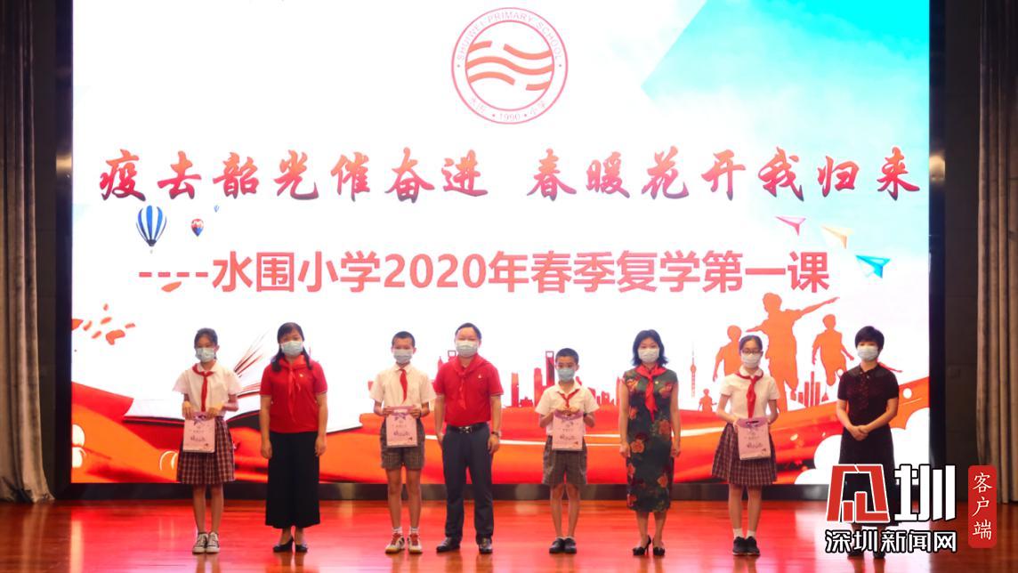 疫情期間,水圍小學(xué)“停課不停學(xué),停課不停教”,進(jìn)行了為期三個(gè)月的線上教學(xué)。在線上學(xué)習(xí)的這段時(shí)間里,學(xué)校涌現(xiàn)了一批在德智體美勞各方面表現(xiàn)優(yōu)異的同學(xué),他們被評為水圍小學(xué)“紅領(lǐng)巾十星”,區(qū)教科院李楠、衛(wèi)生健康副校長明昭、校長劉銳娟、校長李月琴副與副校長楊禹清在此次“復(fù)課典禮”中為獲獎(jiǎng)學(xué)生代表頒獎(jiǎng),并在典禮的最后,為在場的學(xué)生代表發(fā)放了暖心包。