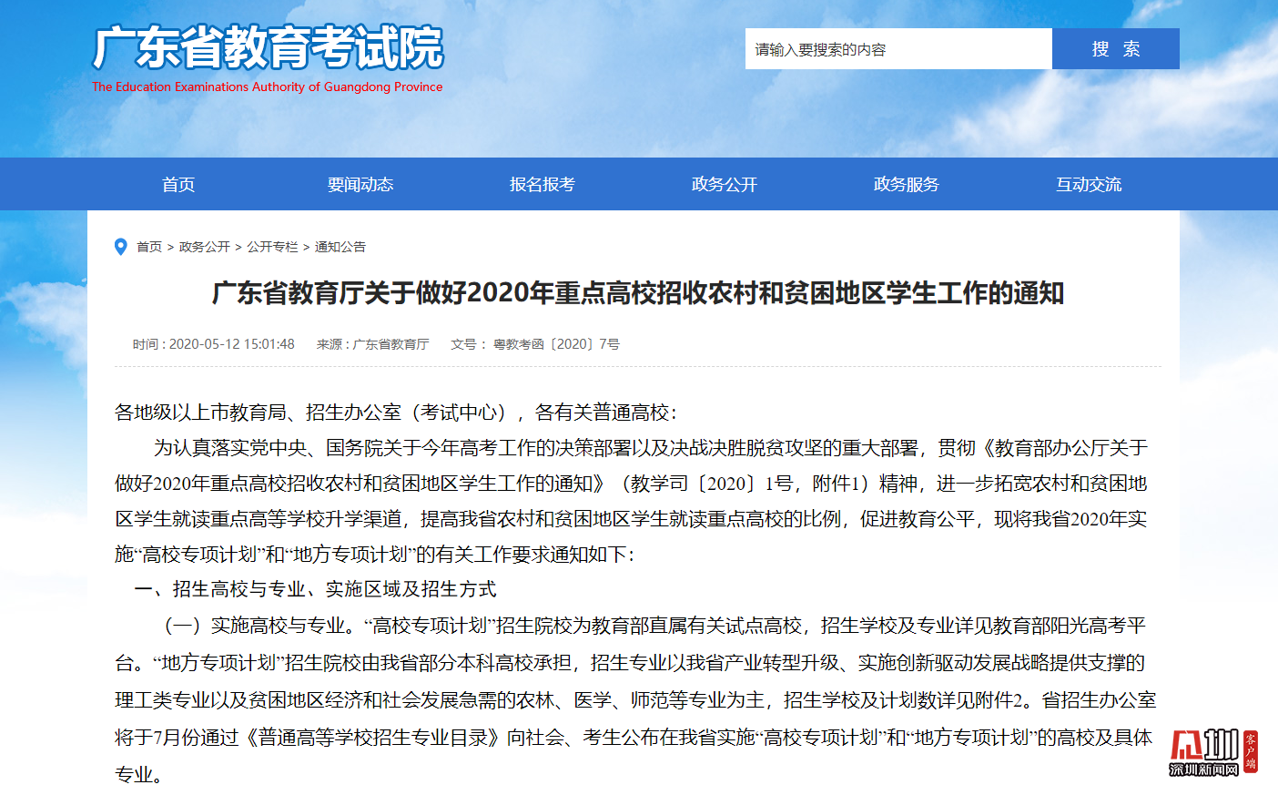 見(jiàn)圳客戶端·深圳新聞網(wǎng)2020年5月13日訊(見(jiàn)圳客戶端、深圳新聞網(wǎng)記者 吳英敏 金洪竹)5月13日,記者從廣東省教育廳獲悉,為進(jìn)一步拓寬農(nóng)村和貧困地區(qū)學(xué)生就讀重點(diǎn)高等學(xué)校升學(xué)渠道,提高廣東省農(nóng)村和貧困地區(qū)學(xué)生就讀重點(diǎn)高校的比例,促進(jìn)教育公平,2020年廣東省將實(shí)施“高校專項(xiàng)計(jì)劃”和“地方專項(xiàng)計(jì)劃”,做好重點(diǎn)高校招收農(nóng)村和貧困地區(qū)學(xué)生工作。