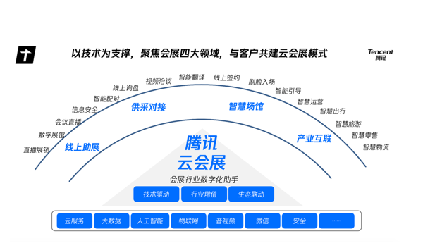 伴隨著云計(jì)算、5G、AI、大數(shù)據(jù)等技術(shù)的成熟,騰訊已經(jīng)成為多個(gè)大型會(huì)展項(xiàng)目提供產(chǎn)品和技術(shù)服務(wù),不斷實(shí)踐和探索線上線下融合的產(chǎn)品技術(shù)及綜合解決方案。騰訊云會(huì)展打造的有別于實(shí)體觀展模式的新思路和新玩法,包括線上展覽、智慧展會(huì)、云展覽等形式,也正為各級(jí)政府和企業(yè)激活云上經(jīng)濟(jì)注入新動(dòng)能。