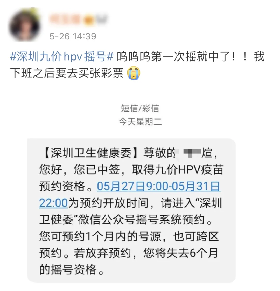 “嗚嗚嗚……簡(jiǎn)直不敢相信我的眼睛,前段時(shí)間連口罩都抽不中的我,竟然抽中了九價(jià)HPV疫苗”。