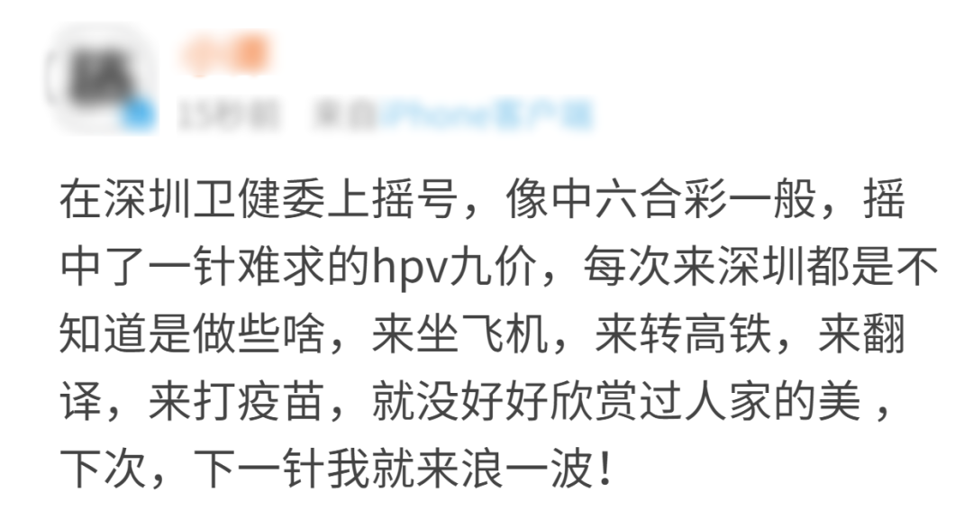 “嗚嗚嗚……簡直不敢相信我的眼睛,前段時間連口罩都抽不中的我,竟然抽中了九價HPV疫苗”。