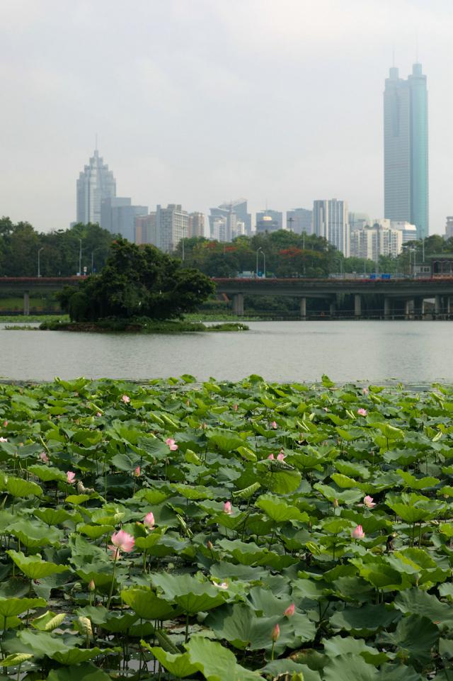 ▲滿塘荷花為城市增加了一抹碧綠色。