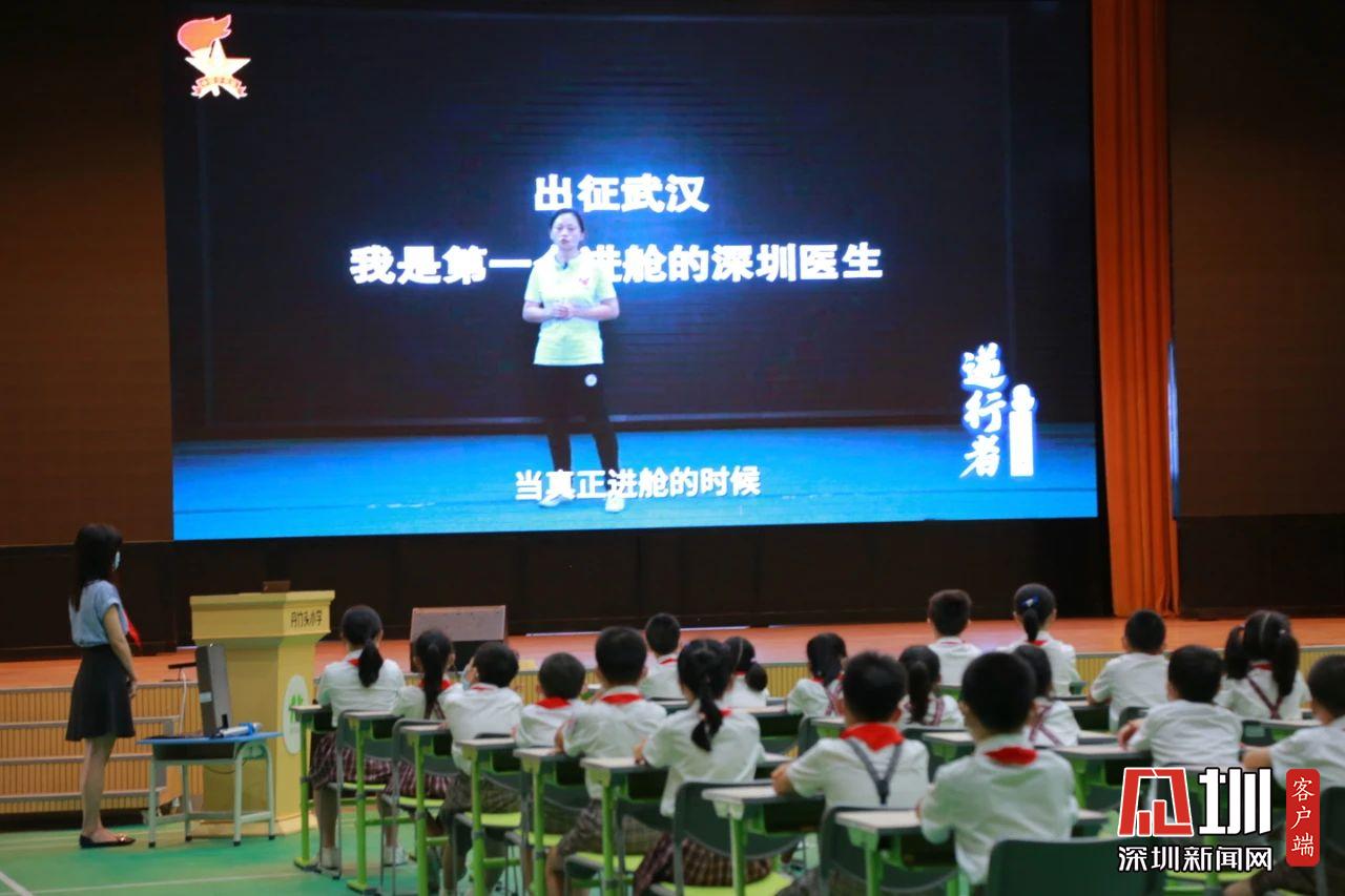 學(xué)生們觀看《逆行者》學(xué)習(xí)深圳醫(yī)生李多云援鄂事跡。