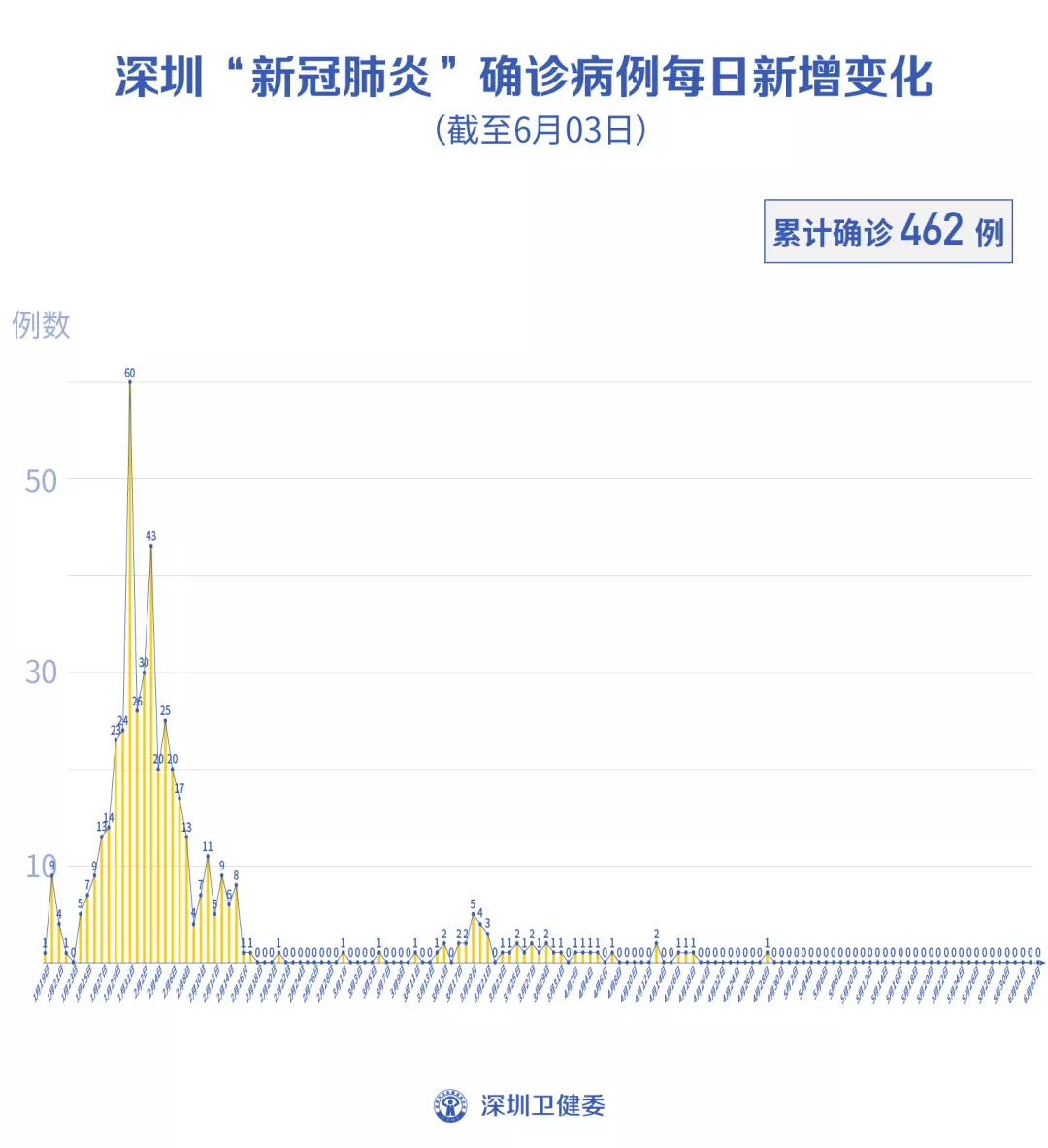 截至6月3日24時,深圳累計報告新冠肺炎病例462例。