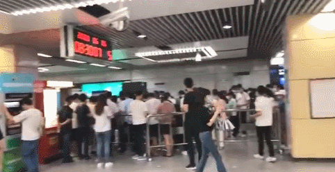 由于地鐵出現(xiàn)延誤,大批乘客滯留在地鐵站內(nèi)。