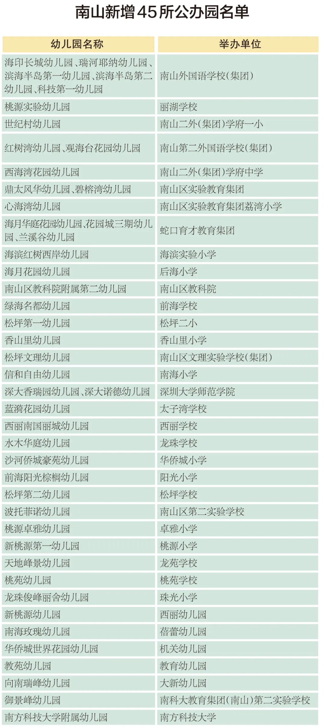 原標題:重大利好!南山新增45所公辦園(附名單)