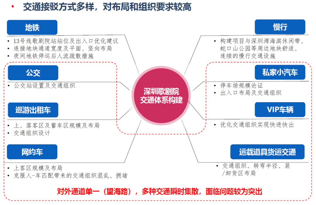 肯定了目前交通組織的總體方案,提出需充分利用地面望海路的交通疏散功能,考慮歌劇院作為地標景點的吸引力,適當增加停車位的彈性及可達性。同時建議市交通運輸局需結(jié)合深圳歌劇院的建設(shè)重新對望海路地下快速路的規(guī)劃方案開展研究工作。