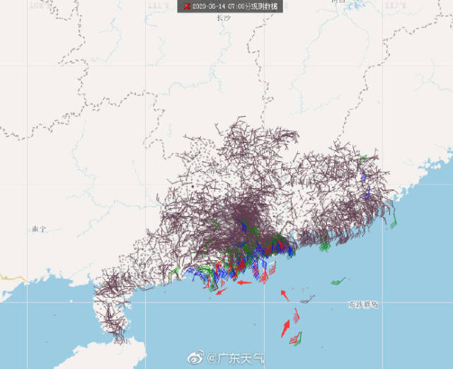 從雷達(dá)回波圖看,湛江降雨已經(jīng)逐步減小,大范圍降雨集中在茂名東北部和陽江中部,同時臺風(fēng)甩上岸的水汽也開啟了全省“隨機(jī)降雨”模式,各地均有涉及,但降水較為分散。