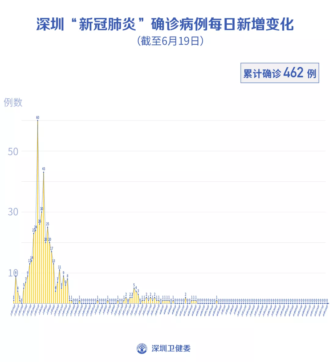 截至6月19日24時(shí),深圳累計(jì)報(bào)告新冠肺炎病例462例。