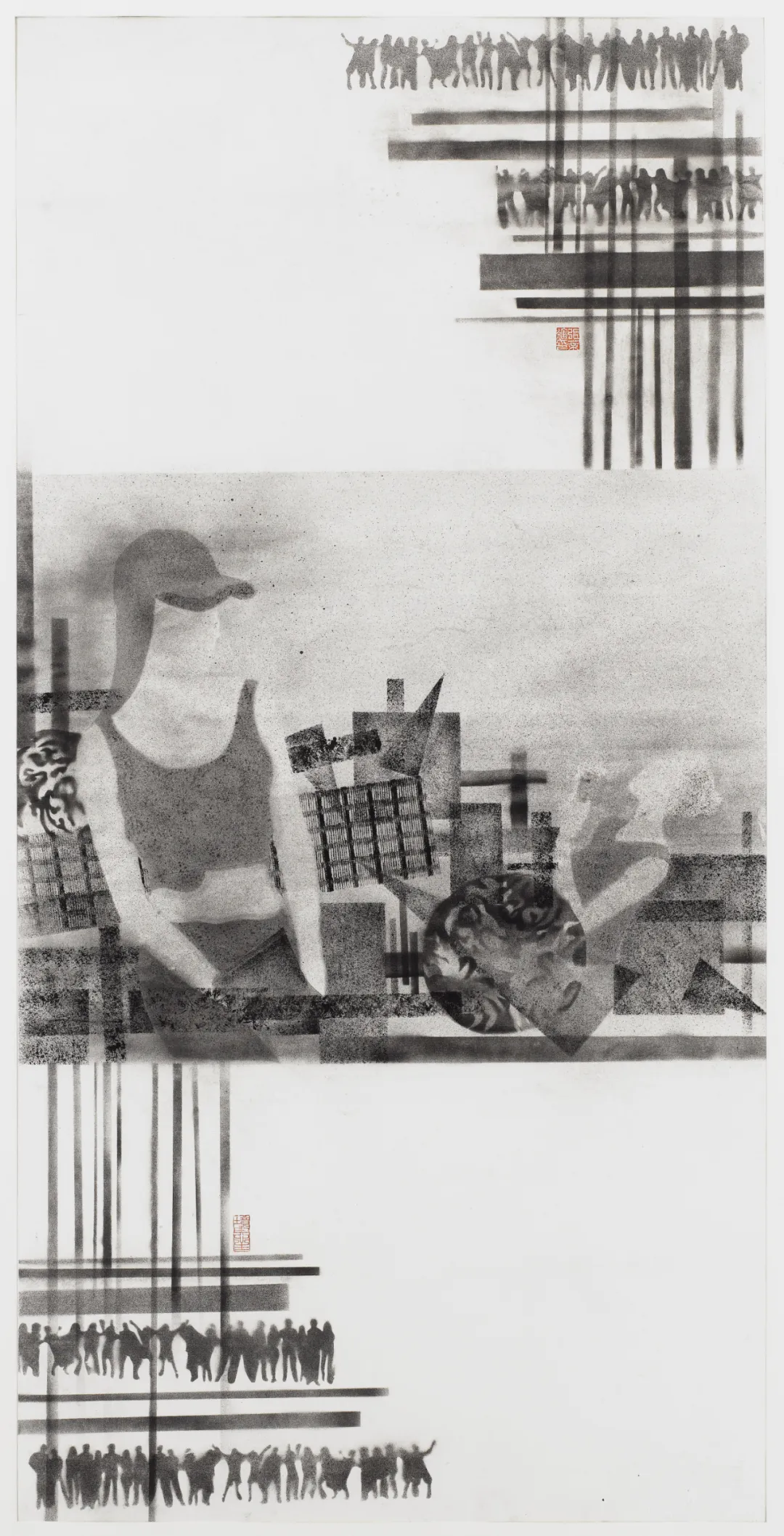 苗瀚文《浮夸背后系列-24》,紙本設(shè)色,54×112cm,2017-2019年
