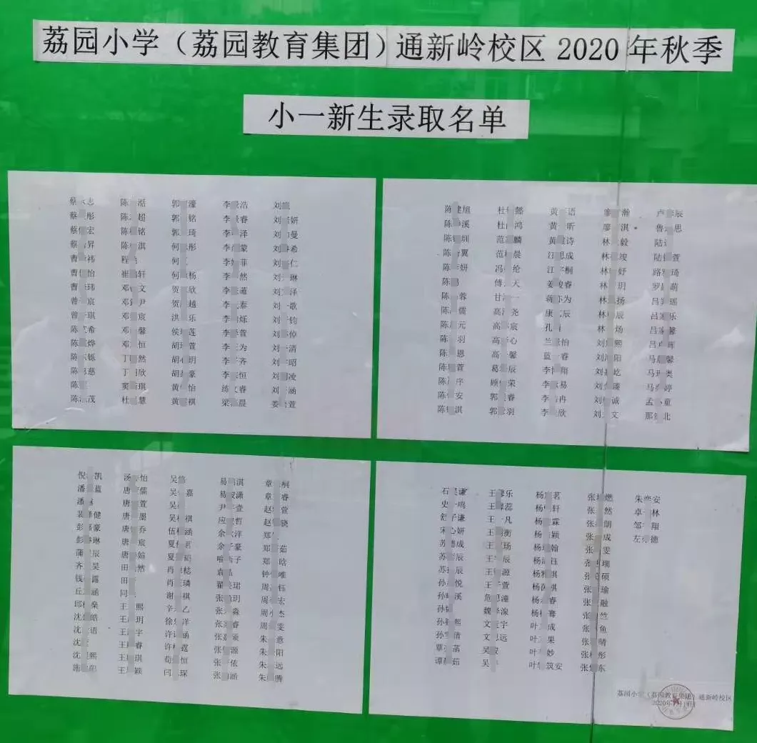 2020年福田區(qū)公辦小一新生錄取名 ...