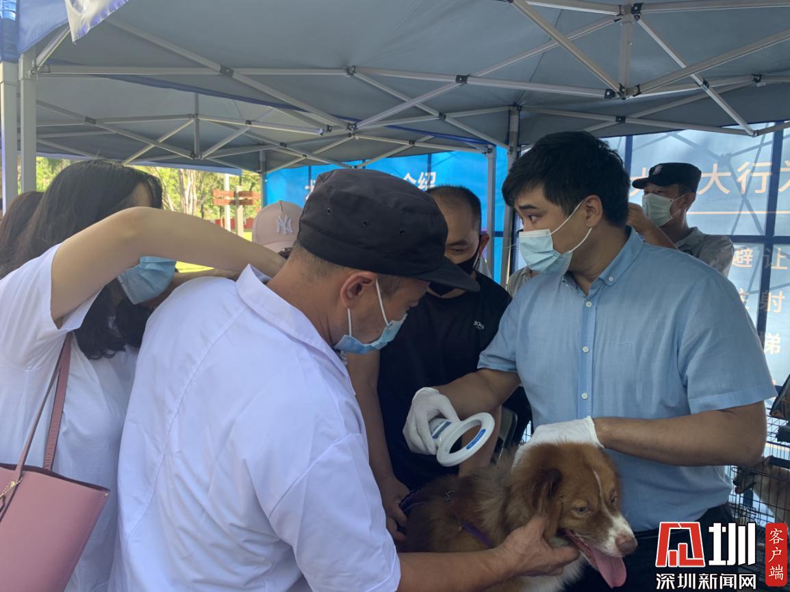 活動(dòng)現(xiàn)場(chǎng),不少養(yǎng)犬市民攜犬前來(lái)咨詢?nèi)恍酒⑸鋯?wèn)題,多個(gè)犬只在現(xiàn)場(chǎng)接受了芯片注射,犬只在注射芯片后無(wú)異常。城管部門(mén)執(zhí)法人員、文明養(yǎng)犬志愿者和寵物醫(yī)院醫(yī)生現(xiàn)場(chǎng)解答犬只芯片相關(guān)問(wèn)題,并現(xiàn)場(chǎng)為福田區(qū)辦理了養(yǎng)犬登記證的犬只植入電子芯片。