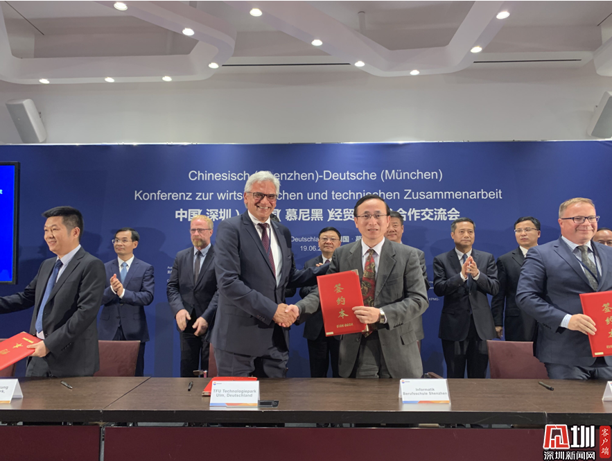 2019年6月,深信院與寶安區(qū)人民政府、德國烏爾姆TFU科技園、德國史太白經(jīng)濟(jì)促進(jìn)基金會(huì)在德國慕尼黑正式簽署四方聯(lián)合共建的“灣區(qū)中德教育與經(jīng)濟(jì)協(xié)同發(fā)展示范基地”合作框架協(xié)議。