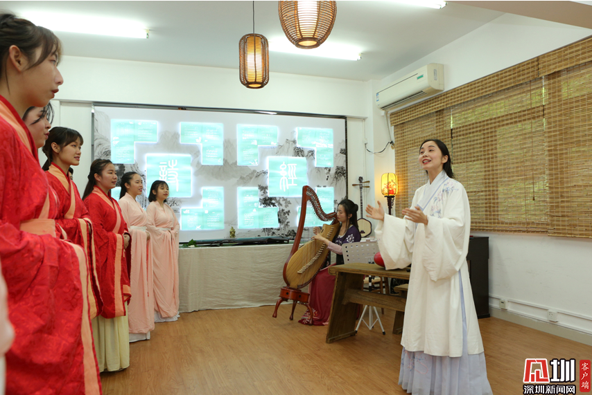 深信院師生在風(fēng)雅頌詩(shī)經(jīng)文化傳承基地演唱。