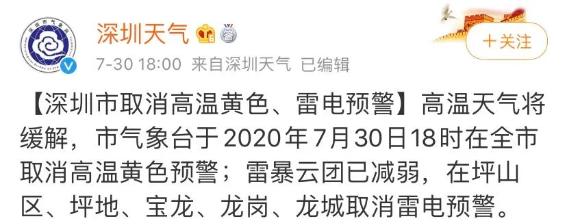 見圳客戶端·深圳新聞網(wǎng)2020年7月31日訊 7月30日18:00,深圳氣象臺取消了持續(xù)生效25天的高溫預(yù)警。