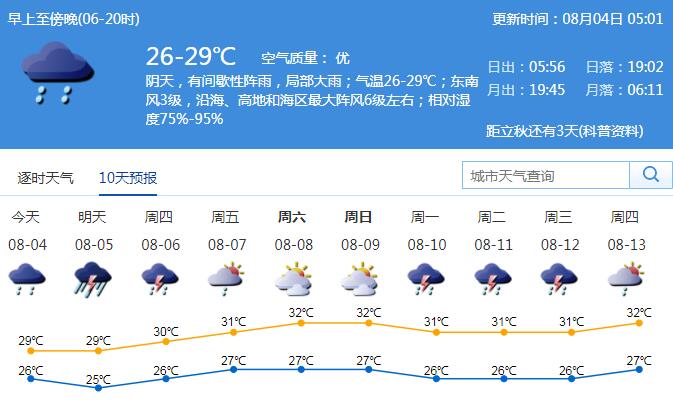 見(jiàn)圳客戶(hù)端·深圳新聞網(wǎng)2020年8月4日訊 今年第3號(hào)臺(tái)風(fēng)“森拉克”(熱帶風(fēng)暴級(jí))已于8月2日14時(shí)40分前后在越南清化市登陸,并逐漸減弱消失。第4號(hào)臺(tái)風(fēng)“黑格比”(熱帶風(fēng)暴級(jí))趨向華東沿海。據(jù)市氣象臺(tái)消息,4日有間歇性陣雨,局部大雨到暴雨,氣溫25-29℃;4日夜間起雨勢(shì)加強(qiáng),5日有暴雨局部大暴雨,陣風(fēng)6-7級(jí);6日白天起降水逐漸減弱,7-9日漸趨悶熱。