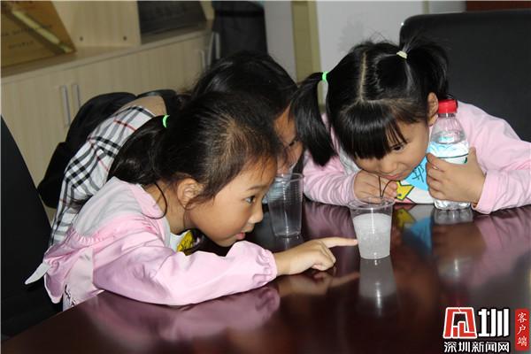 30位社區(qū)青少年年紀(jì)最小的6歲,最大的12歲,有的是跟家長一起,有的是兄弟姐妹一起來,他們認(rèn)真聽課,積極參與實(shí)驗(yàn),眼看著普普通通的自來水,加入一種化工原料,就從液體變成了顆粒狀,霏霏小朋友張大了嘴巴驚呼:“好神奇啊!”在老師的講解下,他們知道了其中的原理,同時(shí)也學(xué)會了尋找身邊生活中的科學(xué)現(xiàn)象,用化學(xué)的視角理解身邊的問題。