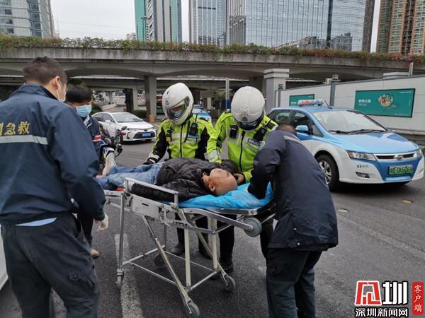很快,救護車到達現場,鐵騎隊員協(xié)助醫(yī)護人員將該男子抬上救護車,并一路護送救護車前往羅湖人民醫(yī)院。到達醫(yī)院后鐵騎隊員幫助聯系家屬,并通知家屬盡快趕到醫(yī)院。