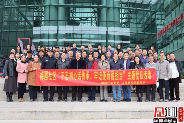 見圳客戶端·深圳新聞網(wǎng)12月18日訊(記者 彭桂紅 劉晨 通訊員 陳秋珊 紀楚苗)12月17日下午,深圳市羅湖區(qū)清水河街道梅園社區(qū)黨委組織社區(qū)各黨支部書記、老年人協(xié)會黨支部黨員一行30余人,來到深圳報業(yè)集團參觀交流黨建工作。自2020年8月至2021年底,深圳新聞網(wǎng)黨總支部掛點聯(lián)系羅湖區(qū)清水河街道梅園社區(qū),雙方結(jié)對共建,當天,雙方在深圳報業(yè)集團開展了一場“不忘初心話傳承,牢記使命說擔當”主題黨日活動。市紀委監(jiān)委駐報業(yè)集團紀檢監(jiān)察組組長、報業(yè)集團黨組成員陳鵬出席活動。