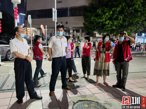 見圳客戶端·深圳新聞網(wǎng)2021年5月27日訊(記者 劉晨 通訊員  魏官明 陳惠冰)5月21日以來,深圳鹽田區(qū)、龍崗區(qū)相繼排查發(fā)現(xiàn)新冠肺炎無癥狀感染者,為堅決遏制疫情擴散蔓延,全力守護人民群眾的生命健康安全。羅湖區(qū)東湖街道按照市委市政府、區(qū)委區(qū)政府的統(tǒng)一部署,結(jié)合疫情防控形勢新變化,快速反應(yīng)、周密部署,5月26日下午,火速整合各部門、各社區(qū)近400名工作人員組成6支防疫突擊隊伍,街道黨工委書記程時菊,黨工委副書記劉慧堅、謝統(tǒng)敏、沈文俊,黨工委委員方海峰,二級調(diào)研員張翠紅分別擔任6支隊伍的督導長,連夜帶領(lǐng)突擊隊員們奔赴各相關(guān)社區(qū)開展核酸檢測工作。