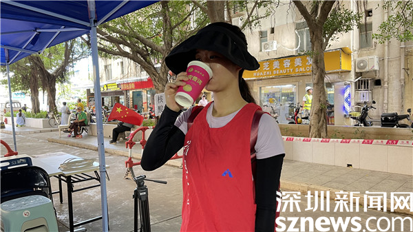 “目前全區(qū)大概有1.1萬名工作人員奮戰(zhàn)在社區(qū)、驛站防疫一線,他們無懼酷暑風(fēng)雨堅(jiān)守崗位,用汗水為疫情防控構(gòu)筑堅(jiān)實(shí)堡壘,羅湖區(qū)婦聯(lián)代表羅湖區(qū)社區(qū)小區(qū)組,積極聯(lián)系愛心企業(yè)瀾滄古茶集團(tuán),送上一杯陳皮茶,感謝他們的無私奉獻(xiàn),也希望他們保護(hù)好自己?!秉S毓瓊對(duì)記者說。
