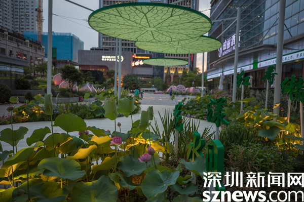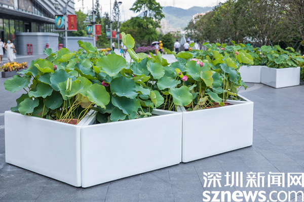據(jù)介紹,街區(qū)以“花樣水貝、紅荷傳情”為主題,提取荷花、蓮葉等造型元素,應(yīng)用多品種荷花打造藝術(shù)花境,充分展現(xiàn)荷花的藝術(shù)之美、文化之美。圍繞水貝壹號、水貝金座、水貝銀座、水貝國際等商圈建筑設(shè)置有紅荷傳情、荷葉青青、荷你藕遇、鉆石蓮心、荷荷美美、映日荷花等景點(diǎn)。