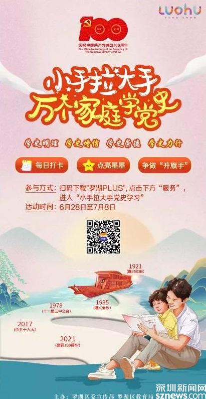 讀特客戶端·深圳新聞網(wǎng)2021年6月28日訊(記者 劉嘉敏 彭桂紅 通訊員 李瑩瑩)“七一”將至,為慶祝中國共產(chǎn)黨成立100周年,進(jìn)一步推動羅湖區(qū)黨史學(xué)習(xí)教育走深走實,羅湖區(qū)委宣傳部聯(lián)合羅湖區(qū)教育局于6月28日在“羅湖Plus”客戶端正式推出“小手拉大手”萬個家庭學(xué)黨史活動。當(dāng)天,羅湖區(qū)委常委、宣傳部部長呂漫妮,羅湖區(qū)副區(qū)長、二級巡視員宋強(qiáng)等領(lǐng)導(dǎo)出席啟動儀式。