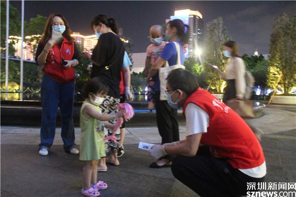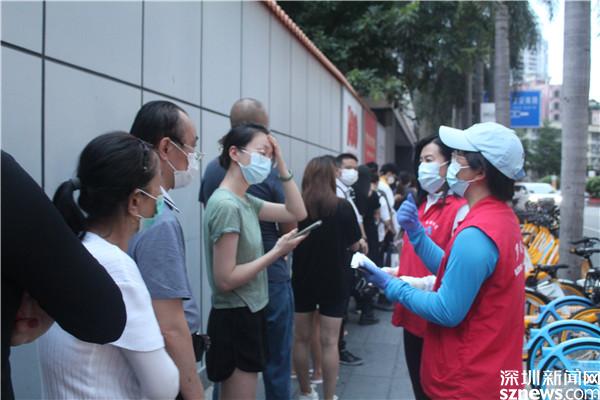 最早到達(dá)老圍社區(qū)的下沉干部是羅湖區(qū)財(cái)政局副局長朱健全,他一來就遇到了核酸檢測,跟社區(qū)工作人員一起布置檢測現(xiàn)場,協(xié)助居民登記健康碼、出示行程碼。有居民帶著孩子來做檢測,他又臨時當(dāng)起了保育員,以便孩子的媽媽順利檢測。身穿紅馬甲的他看起來就是一個經(jīng)驗(yàn)豐富極富愛心的義工。