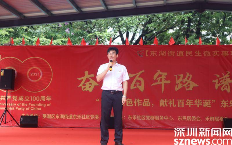 讀特客戶端·深圳新聞網(wǎng)2021年7月30日訊(見(jiàn)習(xí)記者 邱婕 通訊員 黃小花)百年征程波瀾壯闊、百年初心歷久彌堅(jiān)、百年成就催人奮進(jìn)、百年歌聲唱響今天。7月30日上午,“百幅紅色作品,獻(xiàn)禮百年華誕”東樂(lè)社區(qū)建黨100周年慶?;顒?dòng)在東樂(lè)花園文化廣場(chǎng)舉行。東湖街道黨工委副書記、辦事處主任劉慧堅(jiān),黨工委副書記、人大工委主任謝統(tǒng)敏,東湖街道二級(jí)調(diào)研員、東樂(lè)社區(qū)第一書記曾列文,東湖街道辦事處副主任李民,羅湖區(qū)退役軍人事務(wù)局副局長(zhǎng)何朝陽(yáng),東樂(lè)社區(qū)黨委書記劉芳,東樂(lè)社區(qū)社工與義工及廣大居民朋友400余人參與此次活動(dòng)。
