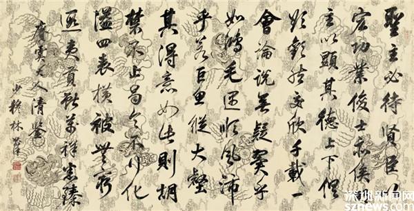 在預(yù)展現(xiàn)場(chǎng),一件雍正帝“積善成德”緙絲引起現(xiàn)場(chǎng)嘉賓的注意,此作為雍正寫完后“積善成德”四字后,命宮廷江南織造將其做成了一件緙絲,工藝尤為珍貴。緙絲又稱“刻絲”,以通經(jīng)斷緯技法織造,工藝獨(dú)特,非具有高度熟練的技巧和藝術(shù)造詣不能勝任。乾隆帝行書御筆節(jié)錄《快雪堂記》,將此記刻于快雪堂刻石之首。此記,除詳述獲得此帖之經(jīng)過外,又道明《快雪堂法帖》由來,因第一卷首刻王羲之《快雪時(shí)晴帖》,故名。此記為行書,寫得自然流暢,毫無做作之態(tài),雖揮灑自如卻絕無草率之感,可見乾隆書法功底之深。