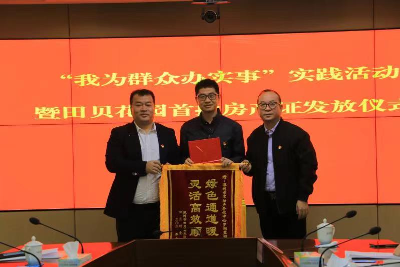 儀式當(dāng)天,5名村民代表從羅湖區(qū)領(lǐng)導(dǎo)的手中接過了房產(chǎn)證,田貝股份合作公司向有關(guān)單位贈送錦旗表示感謝。