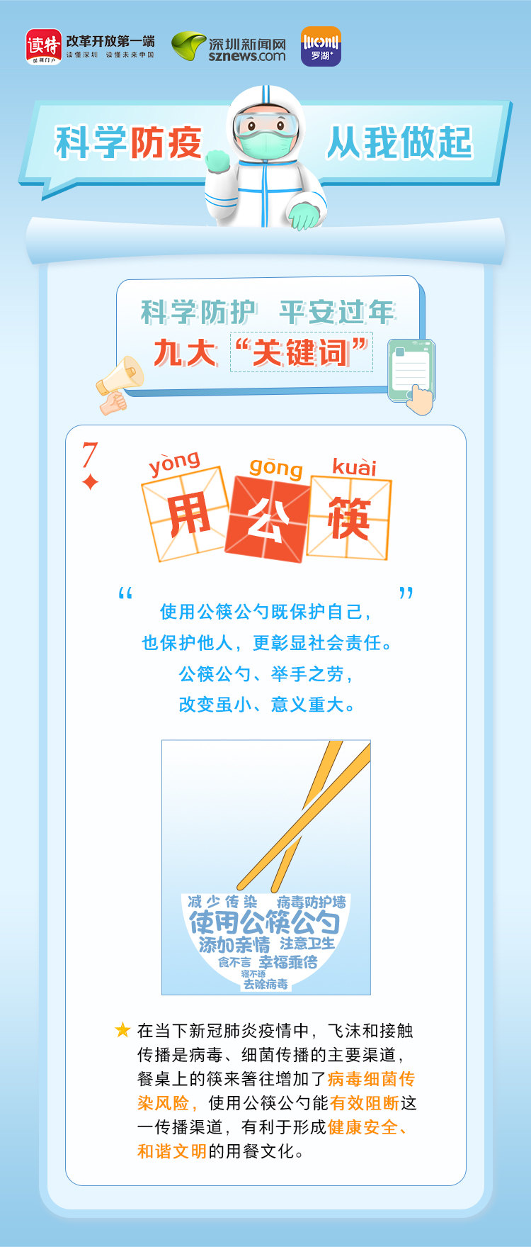 為更好地保護(hù)自己和他人的健康,度過一個祥和平安的春節(jié),請查收《科學(xué)防護(hù)平安過年九大“關(guān)鍵詞”》。在這場沒有硝煙的戰(zhàn)斗中,公安干警、醫(yī)護(hù)人員、社區(qū)工作者、志愿者始終堅(jiān)守在一線,齊心協(xié)力、眾志成城抗擊疫情。讓我們攜手并進(jìn),共同抗疫,采用科學(xué)有效的方式做好自身防護(hù),不僅對自己負(fù)責(zé),更是對家人負(fù)責(zé),對社會負(fù)責(zé)。