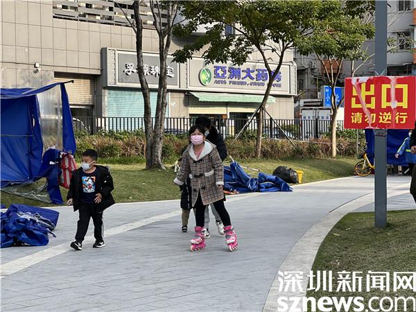 不少孩子還在社區(qū)公園里玩耍,來不及脫下輪滑鞋,就先去做了核酸檢測。