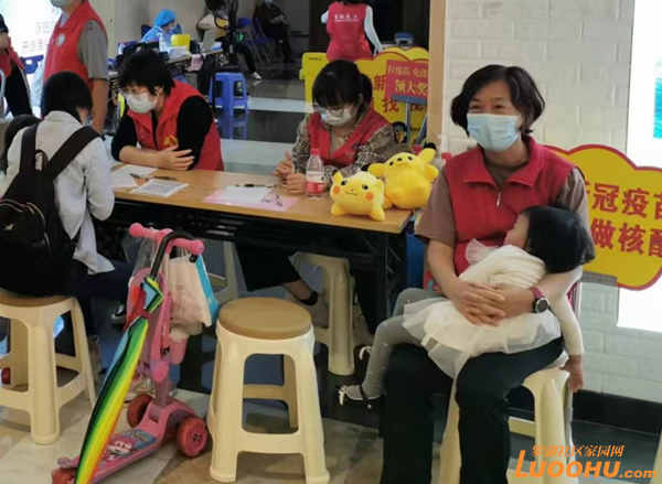 社工楊雨晨看到一個母親帶著剛滿3歲的大女孩來打第一針疫苗,懷里還抱著一個熟睡的孩子,填報信息時很不方便。楊雨晨連忙走過去,表示可以幫忙帶孩子,年輕的母親立刻把孩子交給了楊雨晨。楊雨晨接過孩子,感覺手中一沉,好重。已經來來去去走動一天的楊雨晨,其實早就疲憊不堪,但看著孩子熟睡的小臉,看著那位母親邊填報信息,邊照看著大孩子,她也就不覺得累了。