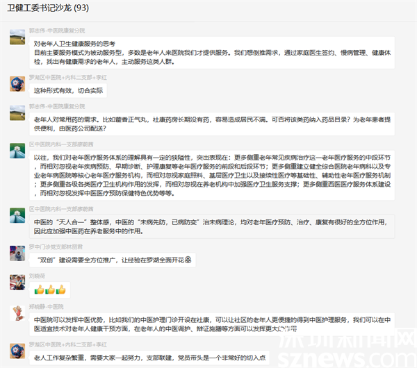 此次沙龍活動(dòng)在一個(gè)小時(shí)內(nèi),收到各書(shū)記參與討論的信息超過(guò)200條,大家參與情緒熱烈。下一步,羅湖區(qū)委衛(wèi)生健康工委將把此次“書(shū)記沙龍”提出的好建議作為下一步老年健康服務(wù)工作的改進(jìn)方向,力促沙龍形成的經(jīng)驗(yàn)、思路切實(shí)轉(zhuǎn)化為實(shí)際舉措和工作亮點(diǎn),在黨建業(yè)務(wù)融合、健康共建共治、探索創(chuàng)新實(shí)踐上持續(xù)發(fā)力,不斷提升群眾的滿意度和獲得感,真正成為群眾的“暖心人”“貼心人”。