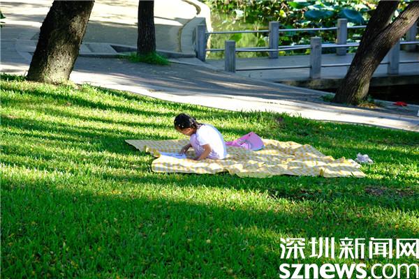 讀特客戶端·深圳新聞網(wǎng)2022年8月22日訊(記者 邱婕 劉嘉敏)八月下旬,盡管過了立秋,但夏天的步伐在深圳似乎特別緩慢,炎炎夏日,時間宛如停留在盛夏時節(jié)。但暑假的步伐依舊如期前行,一晃來到了暑假尾聲,8月22日,深圳新聞網(wǎng)記者來到洪湖公園,看看羅湖孩子們?nèi)绾巫プ 笆罴俚奈舶汀薄?/p>