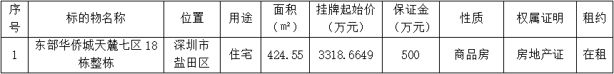 深圳報(bào)業(yè)集團(tuán)委托深圳聯(lián)合產(chǎn)權(quán)交易所對深圳市鹽田區(qū)東部華僑城天麓七區(qū)18棟整棟房產(chǎn)進(jìn)行公開掛牌交易,深圳聯(lián)合產(chǎn)權(quán)交易所現(xiàn)已公開披露以下產(chǎn)權(quán)轉(zhuǎn)讓信息,廣泛征集受讓方。請有意者到深圳聯(lián)合產(chǎn)權(quán)交易所辦理受讓登記手續(xù)。