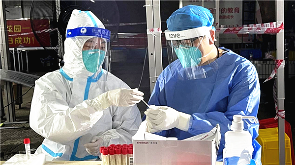 6月20日下午,在深圳市羅湖區(qū)東湖街道布心花園核酸檢測點,羅湖區(qū)婦幼保健院兒童保健科康復治療師李忠麗在核酸檢測現場突發(fā)暈眩,隨即被扶至一旁休息,隨后由其丈夫羅湖區(qū)婦幼保健院兒童保健科康復治療師任雨替補上陣。